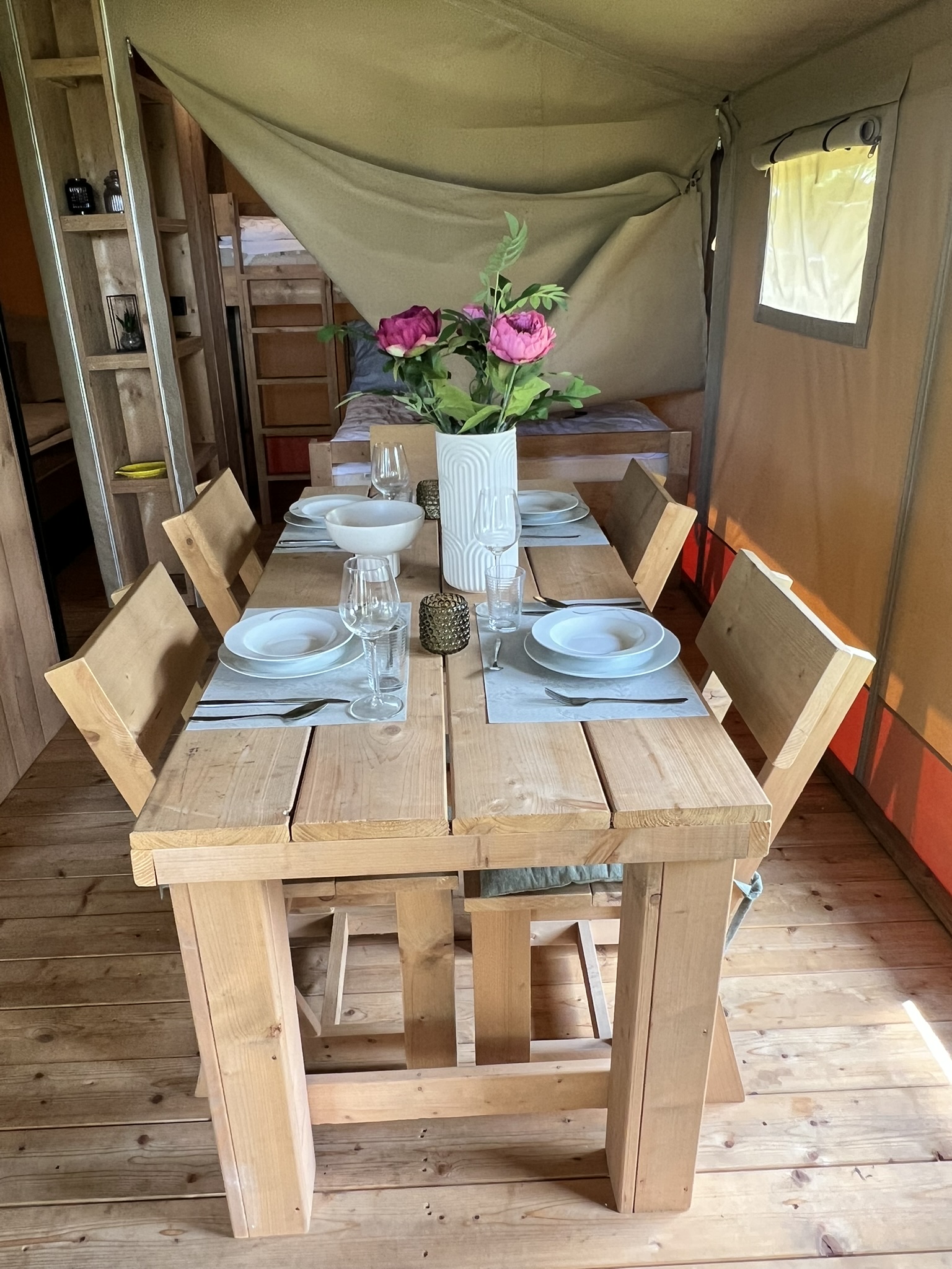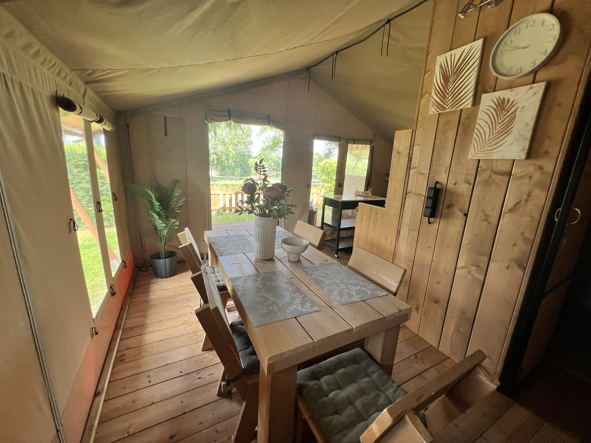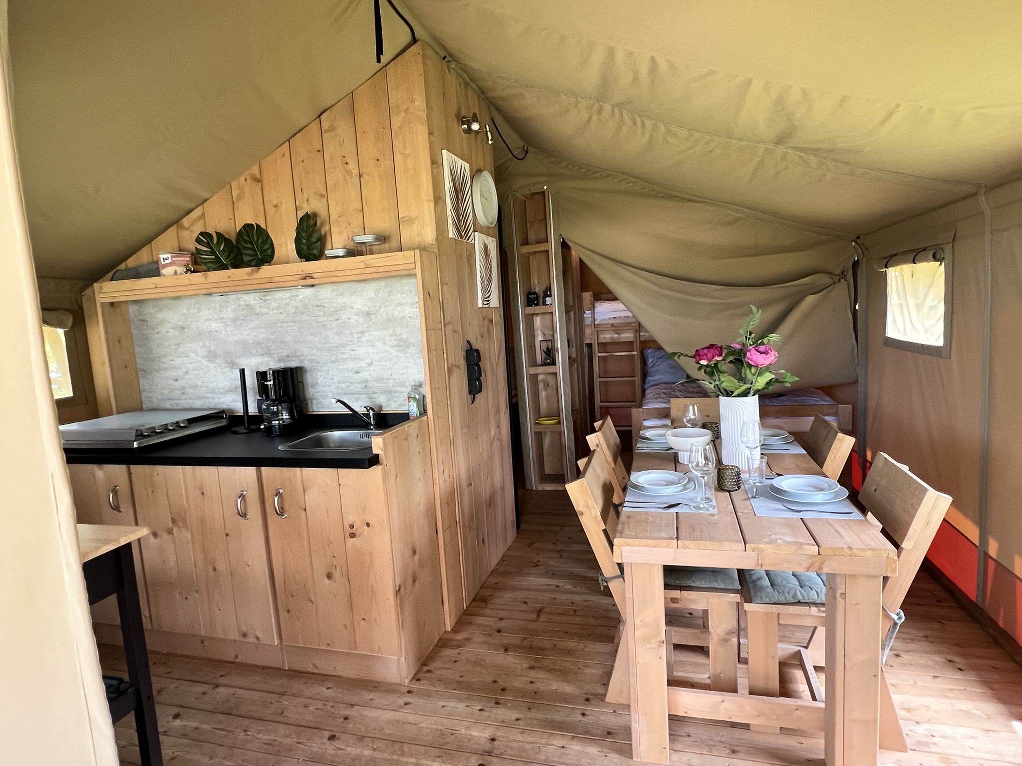 Sie suchen nach einem authentischen Campingerlebnis mit einem Hauch von Abenteuer und Komfort? Unsere stilvoll eingerichtete Safari Lodge bietet genau das – mitten in der Natur und nur wenige Schritte vom Badesee entfernt.